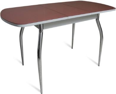 ОписаниеСтол (раздвижной) выполнен из ЛДСП 22 мм, покрытого закаленным стеклом 4 мм с безопасной фаской, окрашенным итальянскими керамичекими красками, вставка 32 см покрытая также окрашенным закалённым стеклом хранится внутри стола. В базовой комплектации опоры гнутые хром