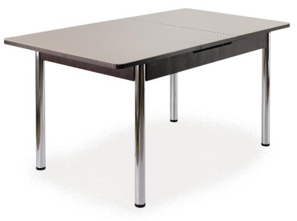 ОписаниеСтол прямоугольный раздвижной выполнен из ЛДСП 18 мм и МДФ в пленке ПВХ, покрытого закаленным окрашеным стеклом 4 мм с безопасной фаской, вставка с механизмом автоподъема 32 см покрытая также окрашеным закалённым стеклом. В базовой комплектации ноги из массива в цвет основания.