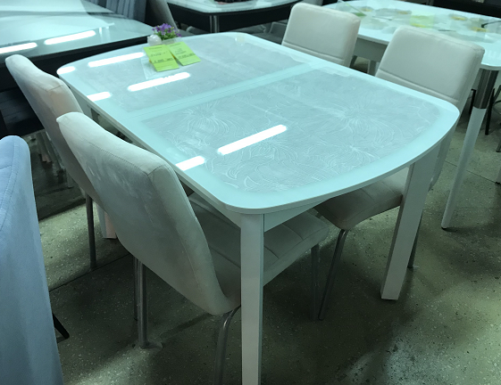 ОписаниеСтол раздвижной, кожа под стеклом.